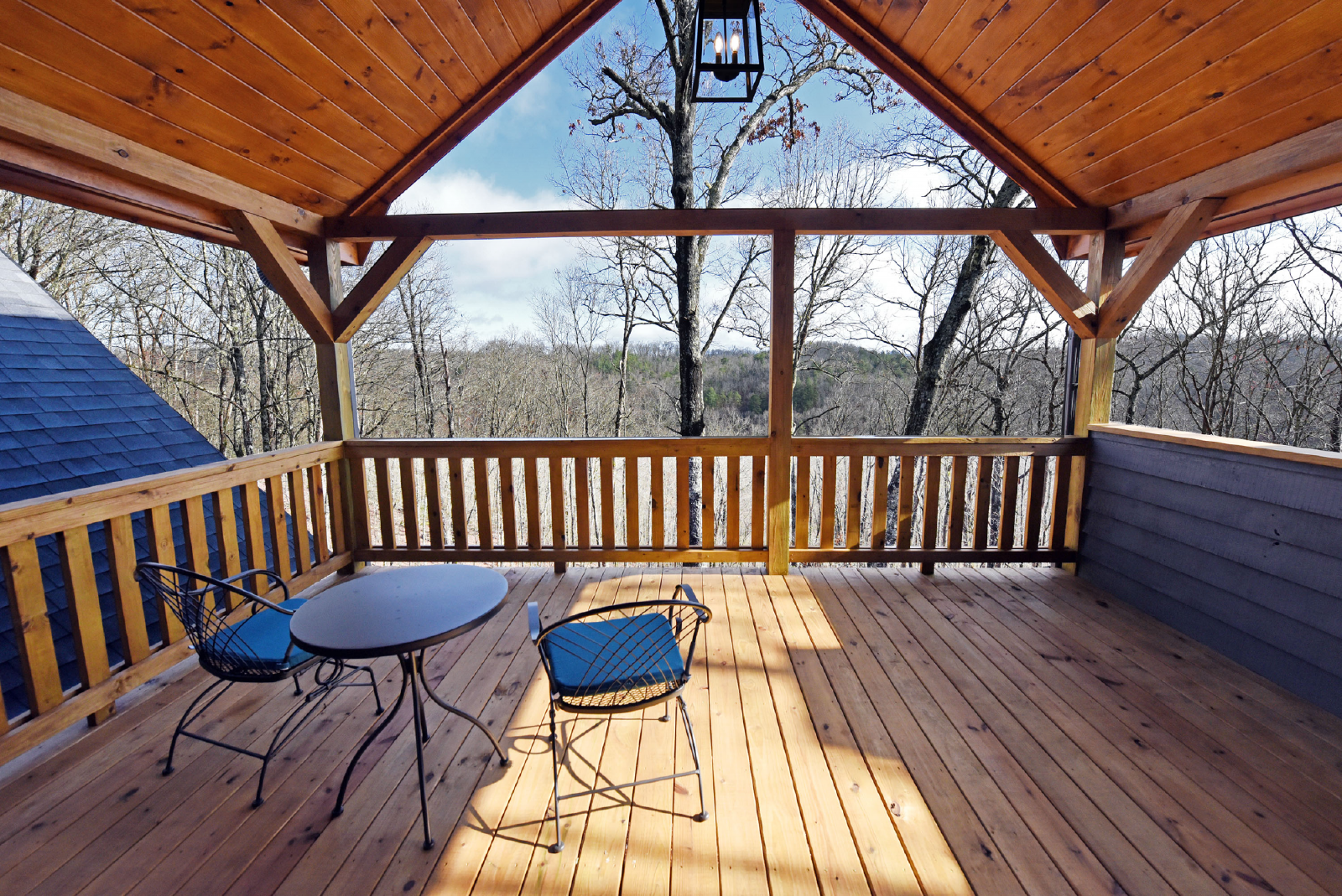 The large wrap around porch is gated so the pets can roam freely and know your fur babies are safe. A dog poop pail is also provided for waste disposal. Please empty into trash bags prior to checkout and place into the trash receptacle in the wood trash bin area.