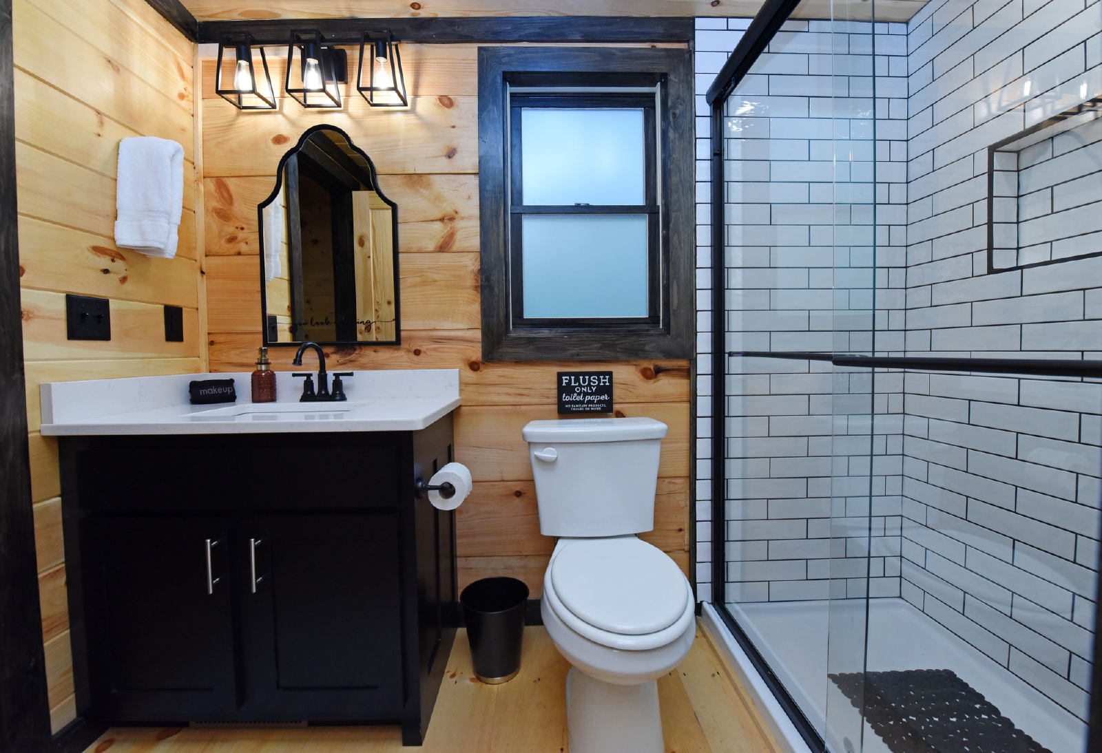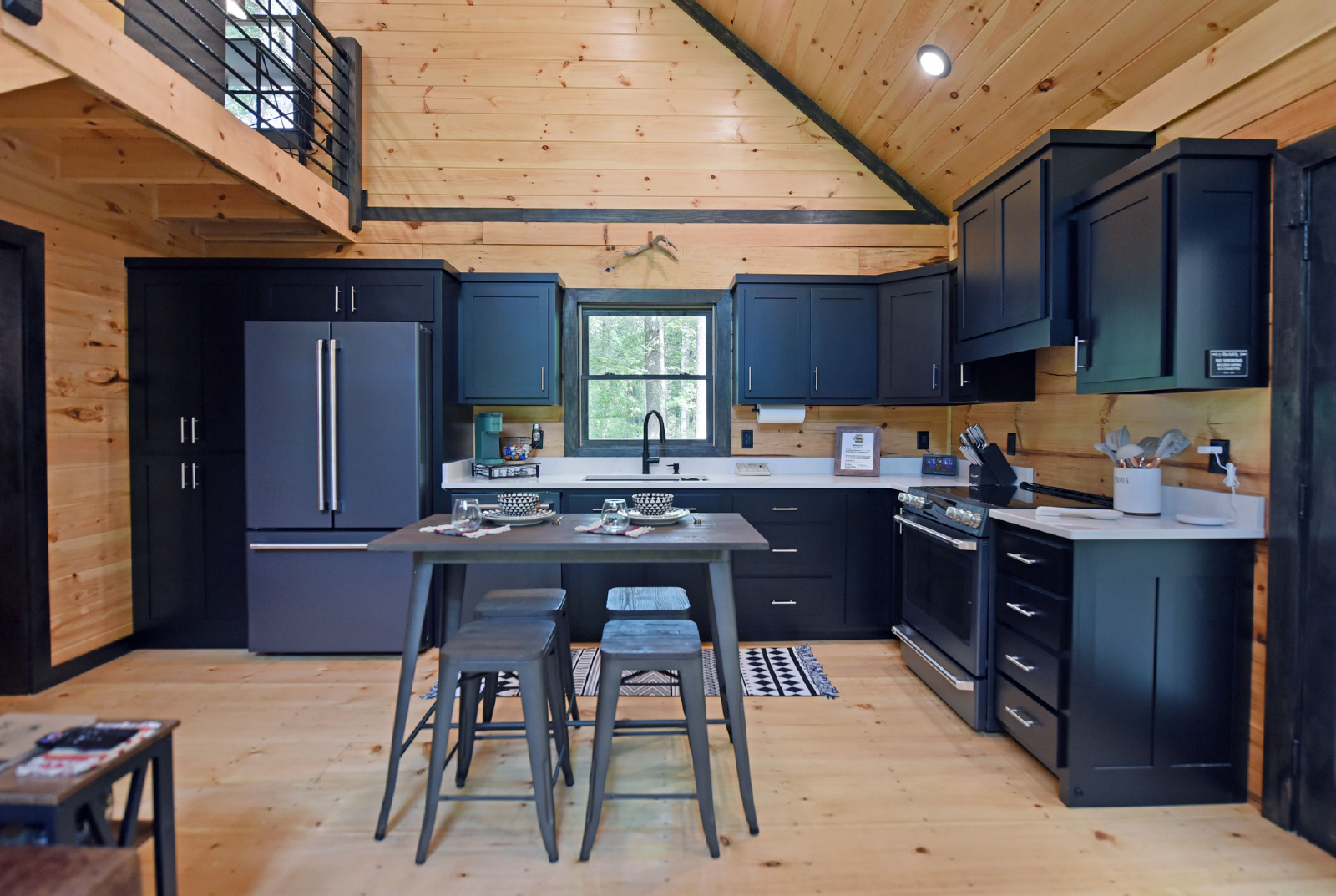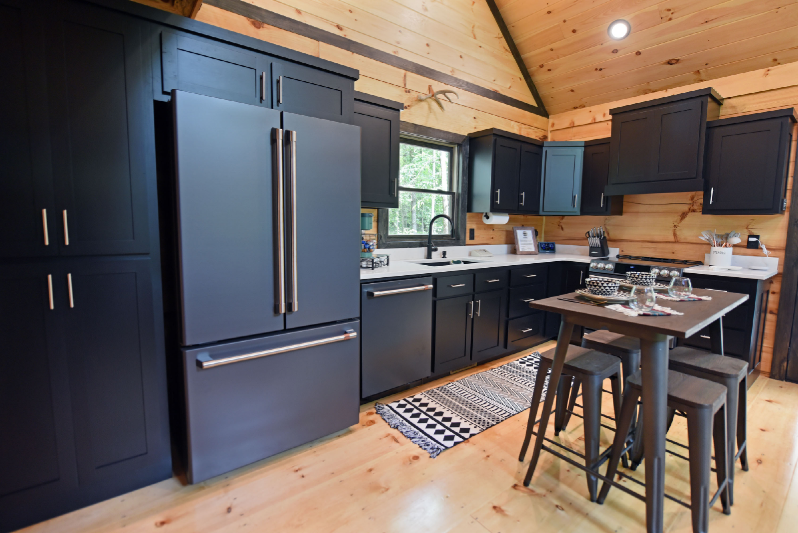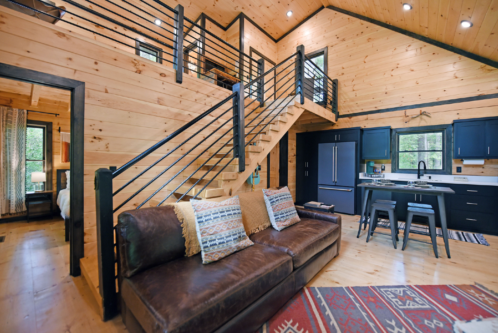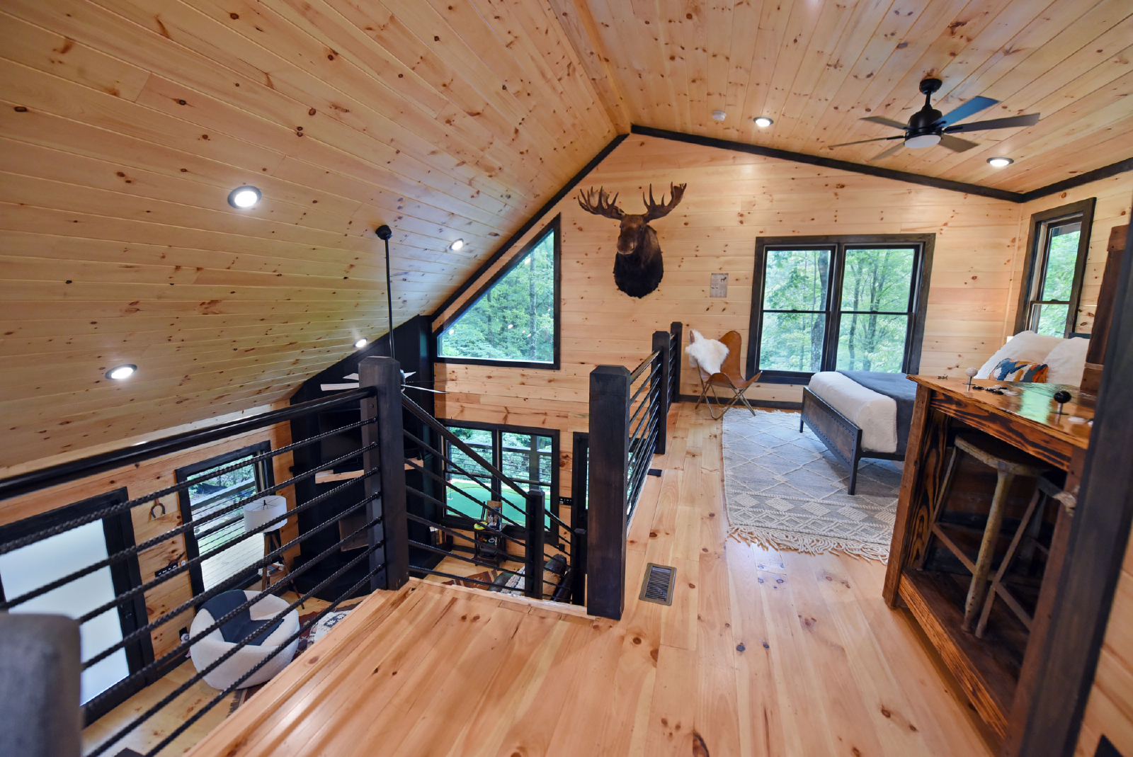 Arriving you will notice the modern style of this cozy, quiet retreat! You will enter the cabin into a spacious open vaulted living area. Be sure to glance up to your left and say hi to “Burt” the Boujee Moose mascot!