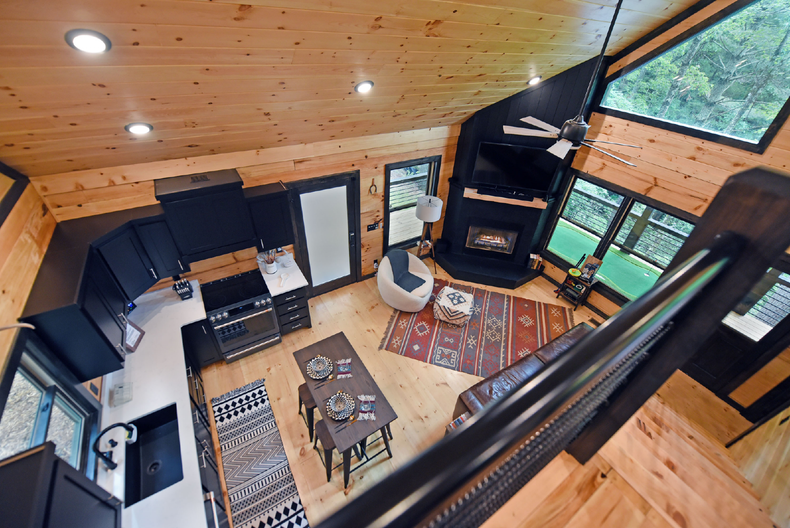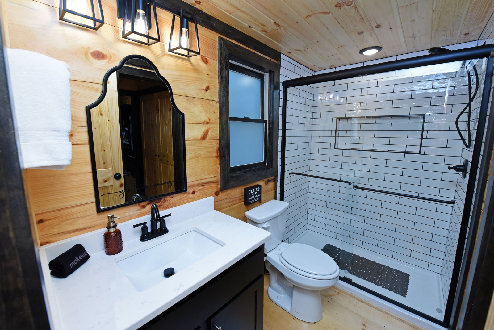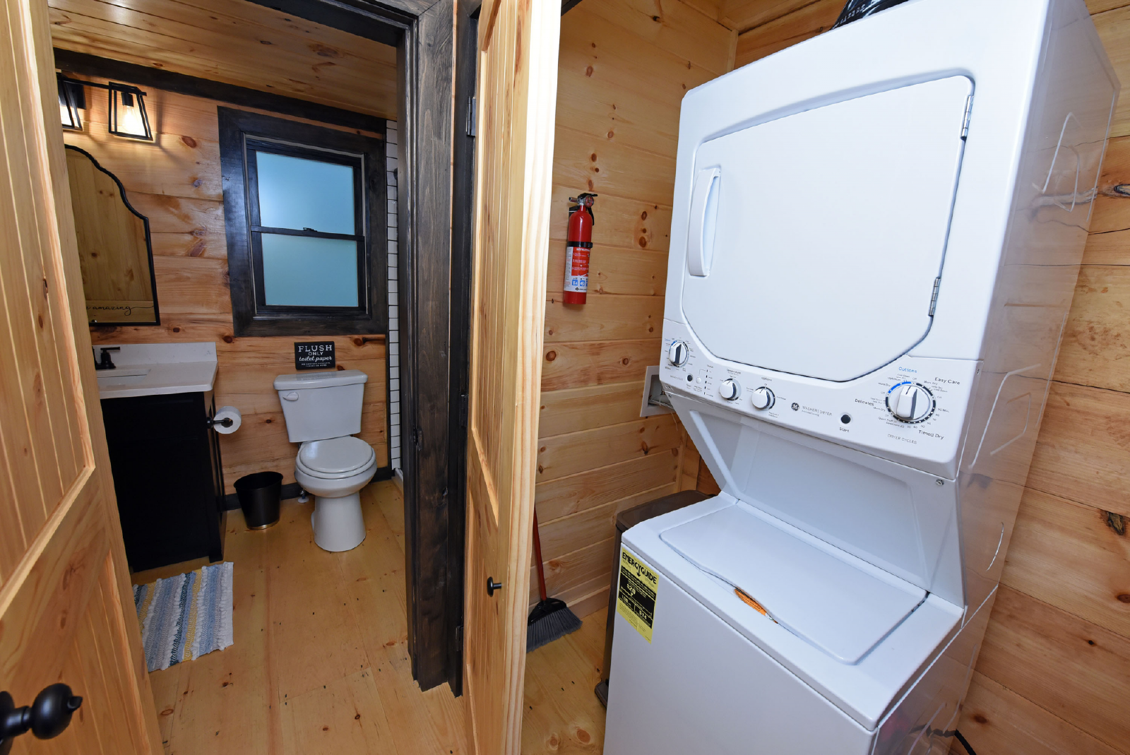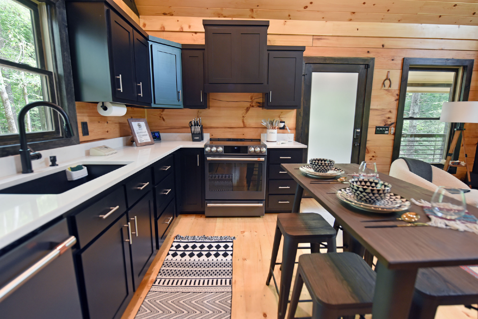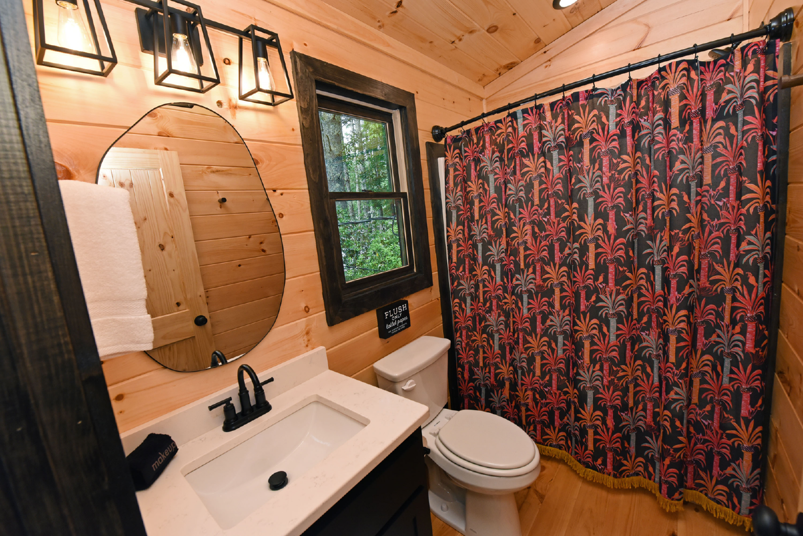 Arriving you will notice the modern style of this cozy, quiet retreat! You will enter the cabin into a spacious open vaulted living area. Be sure to glance up to your left and say hi to “Burt” the Boujee Moose mascot!