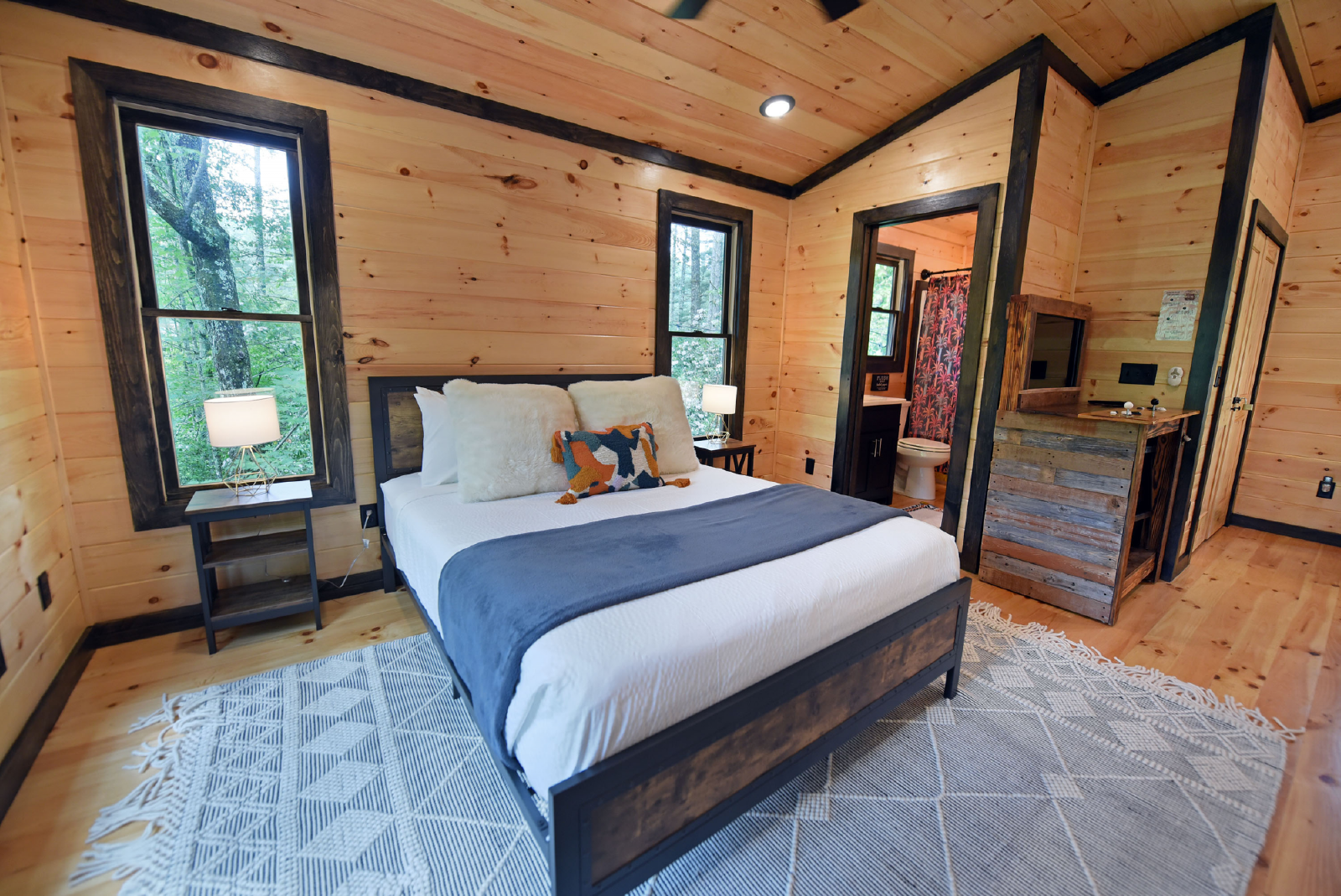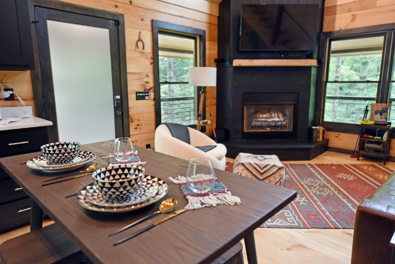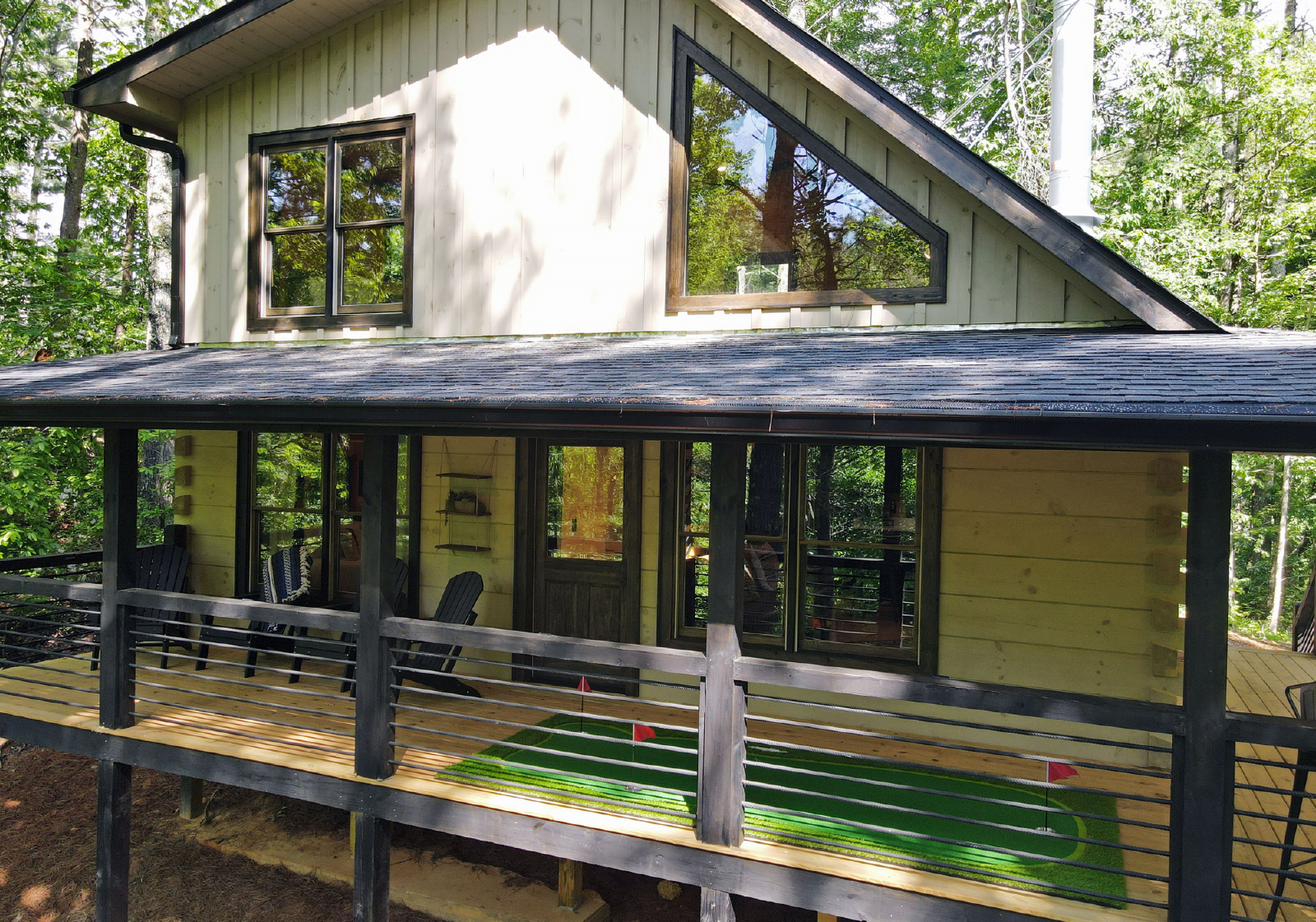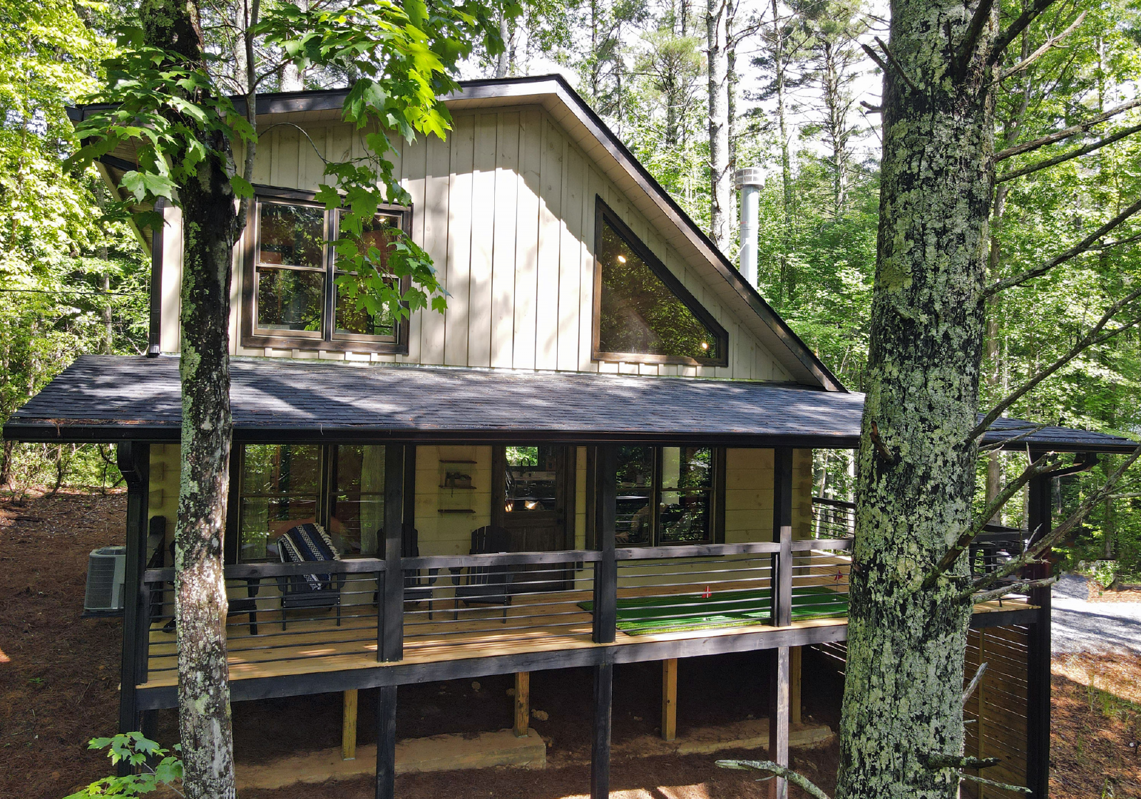 New stylish cabin, minutes from downtown Blue Ridge. “Burt” the moose will greet you as you enter this posh modern mountain escape. The furniture is trendy, linens/bedding are high end, and the artistic décor is warm and inviting. You can practice putting on the porch while enjoying the sounds of nature, relax in the comfortable outdoor furniture or enjoy your favorite beverage by the flagstone fire pit. This cozy cabin is the perfect place to enjoy everything the mountains have to offer.