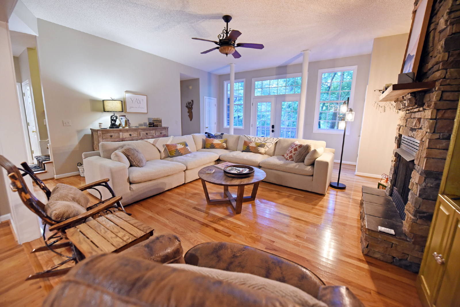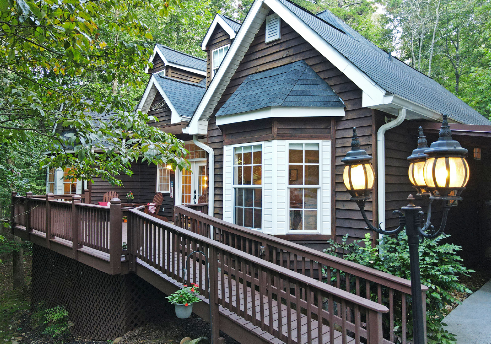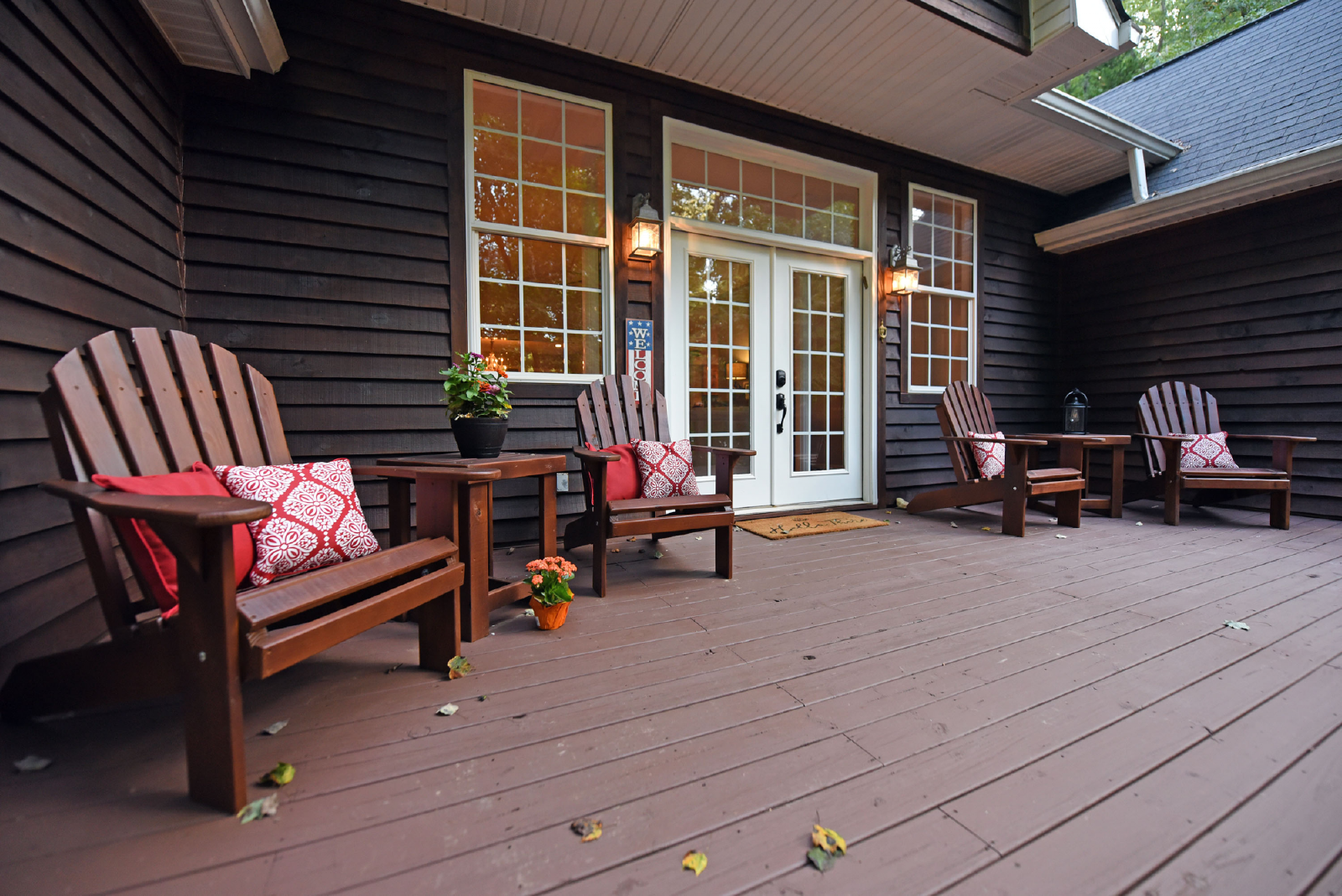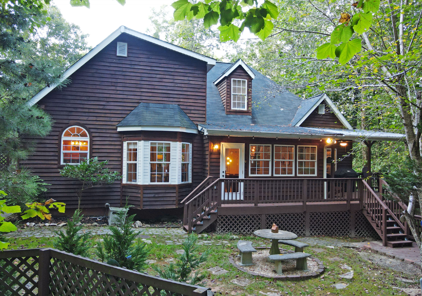 You will access the home from the front side onto a very open deck that is gated to allow for small children to roam free while relaxing in the large wooden chairs to watch the deer go by!