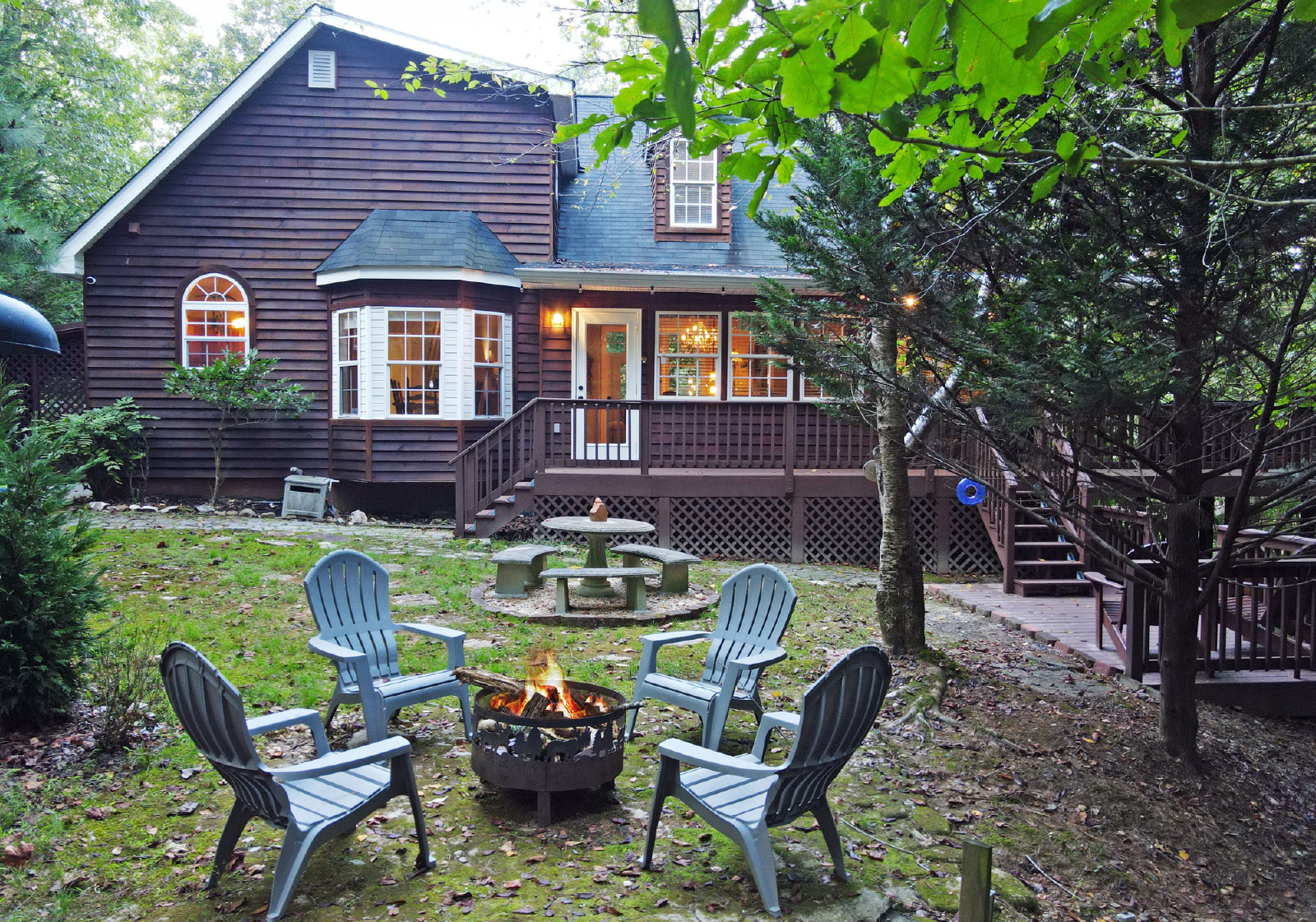 Kids will have a blast exploring the outside area and playing games. Just off the back deck is a fire pit area, picnic table and small private yard. Coosawattee River Resort features a plethora of amenities for the family to enjoy. It includes an indoor and outdoor pool, recreation center (tennis, basketball, pickleball, arcade games, pool table, 18 hole miniature golf course and play area). In addition, the resort has several parks for picnics, and fishing. Fishing Pond Park does not require a fishing license. However, a license is required to fish the river. You can also go tubing. Bring your own or rent from a tubing company outside the resort.