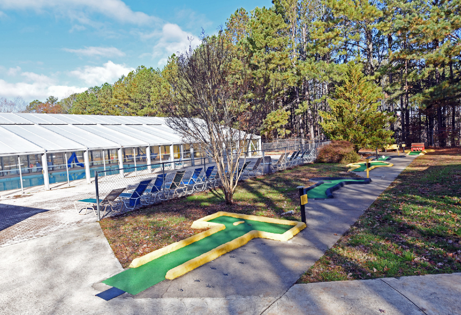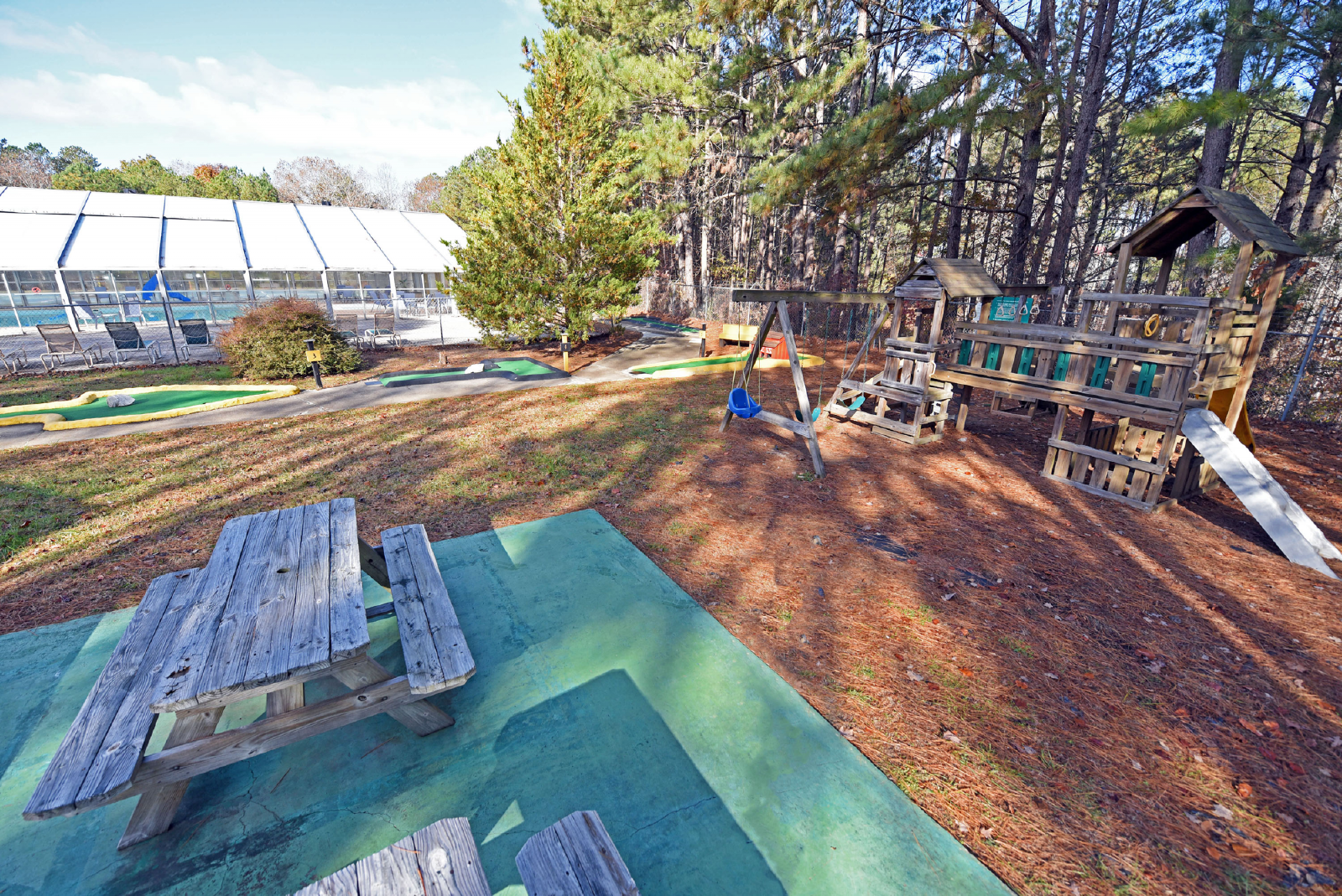 Coosawattee River Resort features a plethora of amenities for the family to enjoy. It includes an indoor and outdoor pool, recreation center (tennis, basketball, pickleball, arcade games, pool table, 18 hole miniature golf course and play area). In addition, the resort has several parks for picnics, and fishing. Fishing Pond Park does not require a fishing license. However, a license is required to fish the river. You can also go tubing. Bring your own or rent from a tubing company outside the resort.