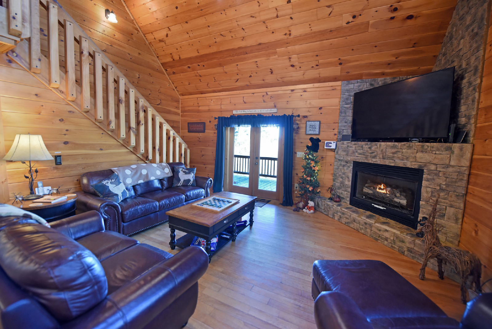 When you envision your mountain escape, Harvest Moon is the traditionalist paradise! Large stone gas fireplace, vaulted ceiling, rich wood walls, cozy furniture, game room and large porches with wonderful mountain views! Soak away your stress in the 5 person hot tub, have s’mores around the fire pit, read a book, enjoy coffee while rocking on the porch or take a nap in the swaying hammock. A wonderful private and spacious cabin for family and friends. Your harvest has come in!